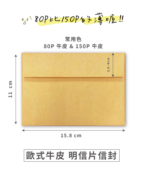 【信封小叮嚀】 .信封成型若加工製程包含軋型、糊邊,工序繁瑣容易出現精準度問題,2~3mm誤差皆為常態,不得為退貨之理由。 .尤其尺寸越小的信封越難精準,在請自行斟酌。 .因拍照光線影響、各螢幕的色彩差異,故實品與照片略有色差,顏色請以實品為準。